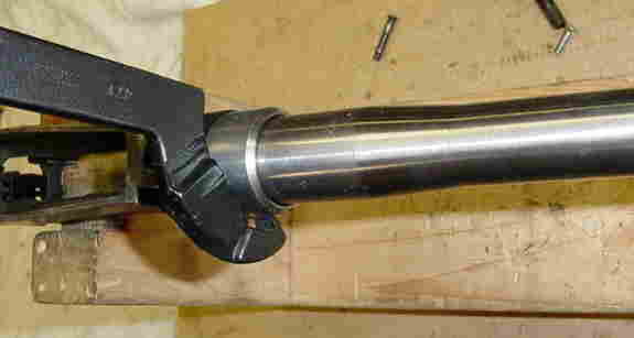 | The barrel can be screwed in by hand until it is head spaced. Then you use the locking ring to lock in in place. Use a spanner wrench to lock the ring in place. We can supply these for $6 each. Use BLUE "Lock Tight" to keep everything from vibrating apart. |