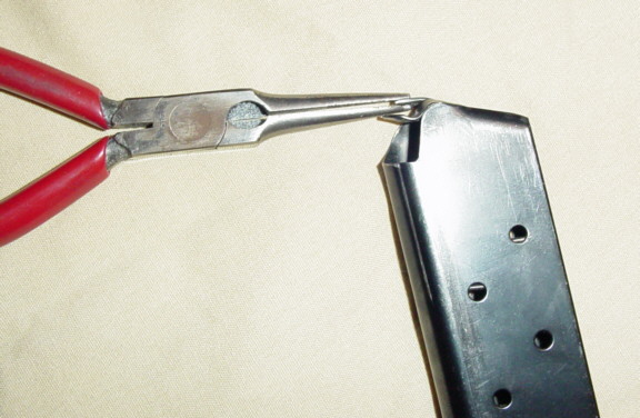 bend the front tip of the magazine follower so that is will not catch on
