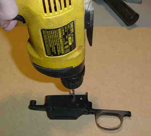 Once all the pins are installed, trim any excess off with a Dremmel and file. Make sure the converted trigger guard will still fit in the stock. | ![]() |